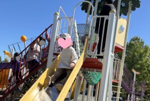 その後、3種類ほどある滑り台をローテーションし楽しむ2人。