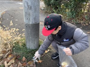 たくさんのゴミを拾い、手袋を履いていない手で拾おうとして「あ、間違えちゃった」とお茶目な姿も😊